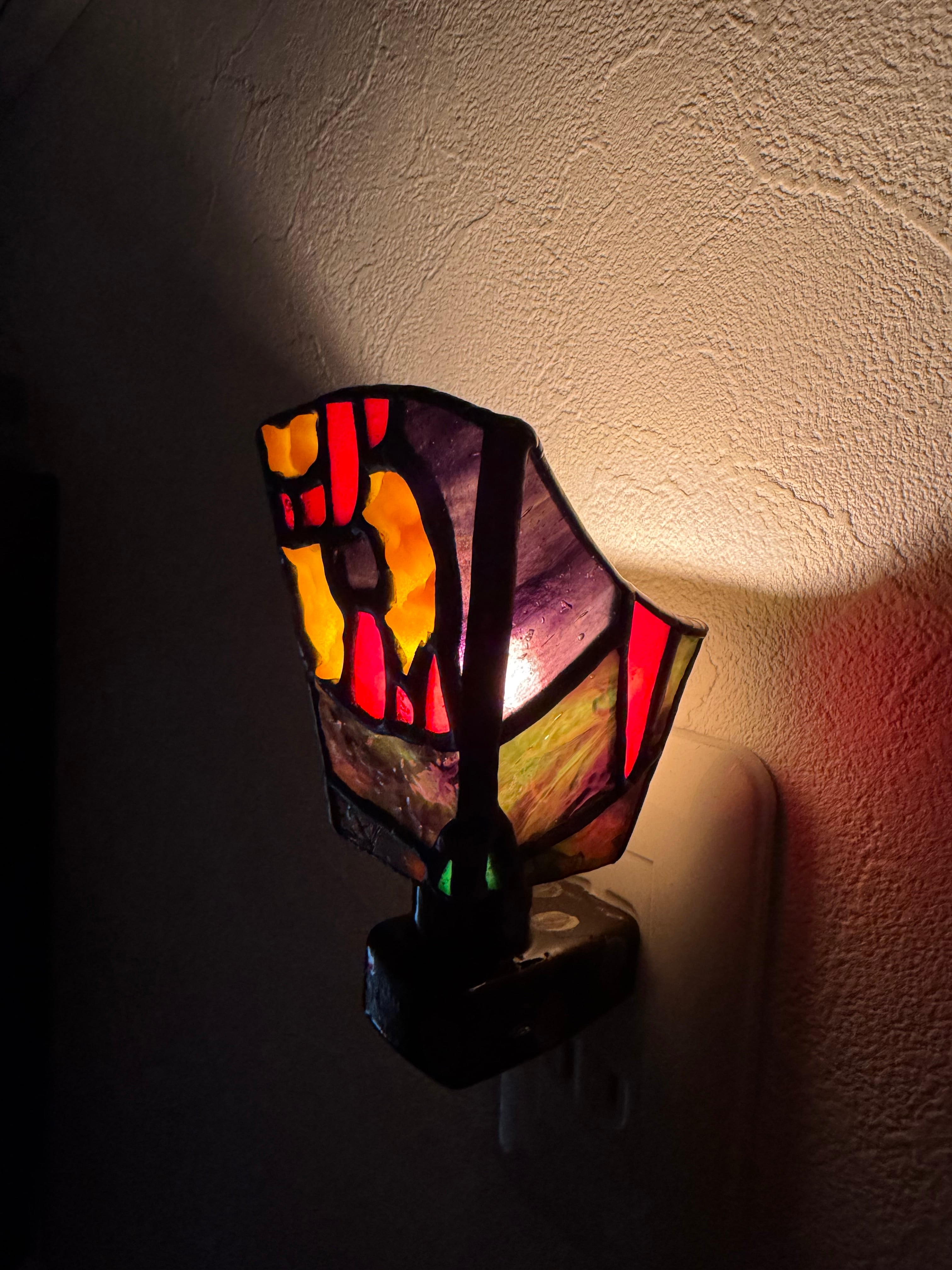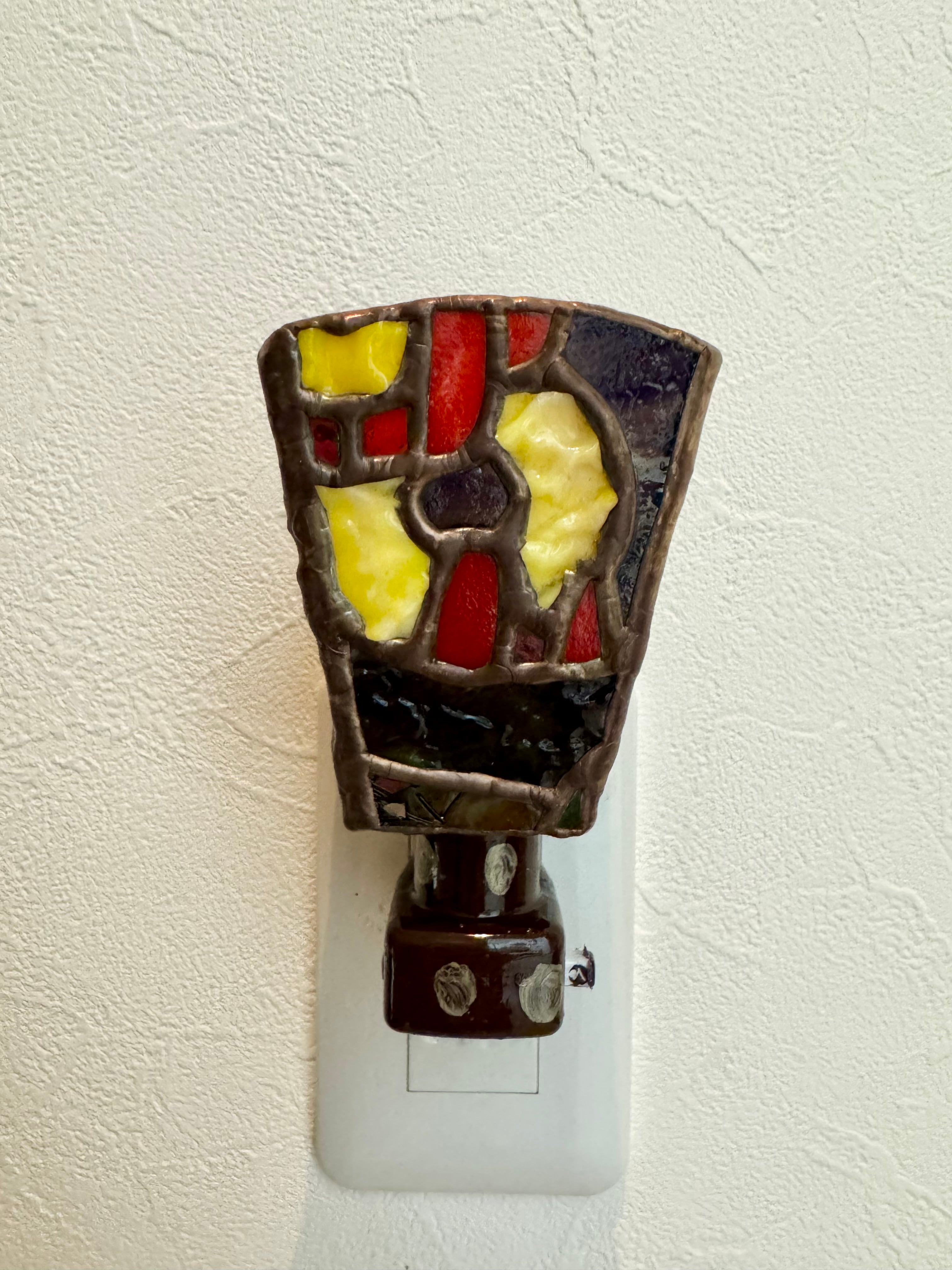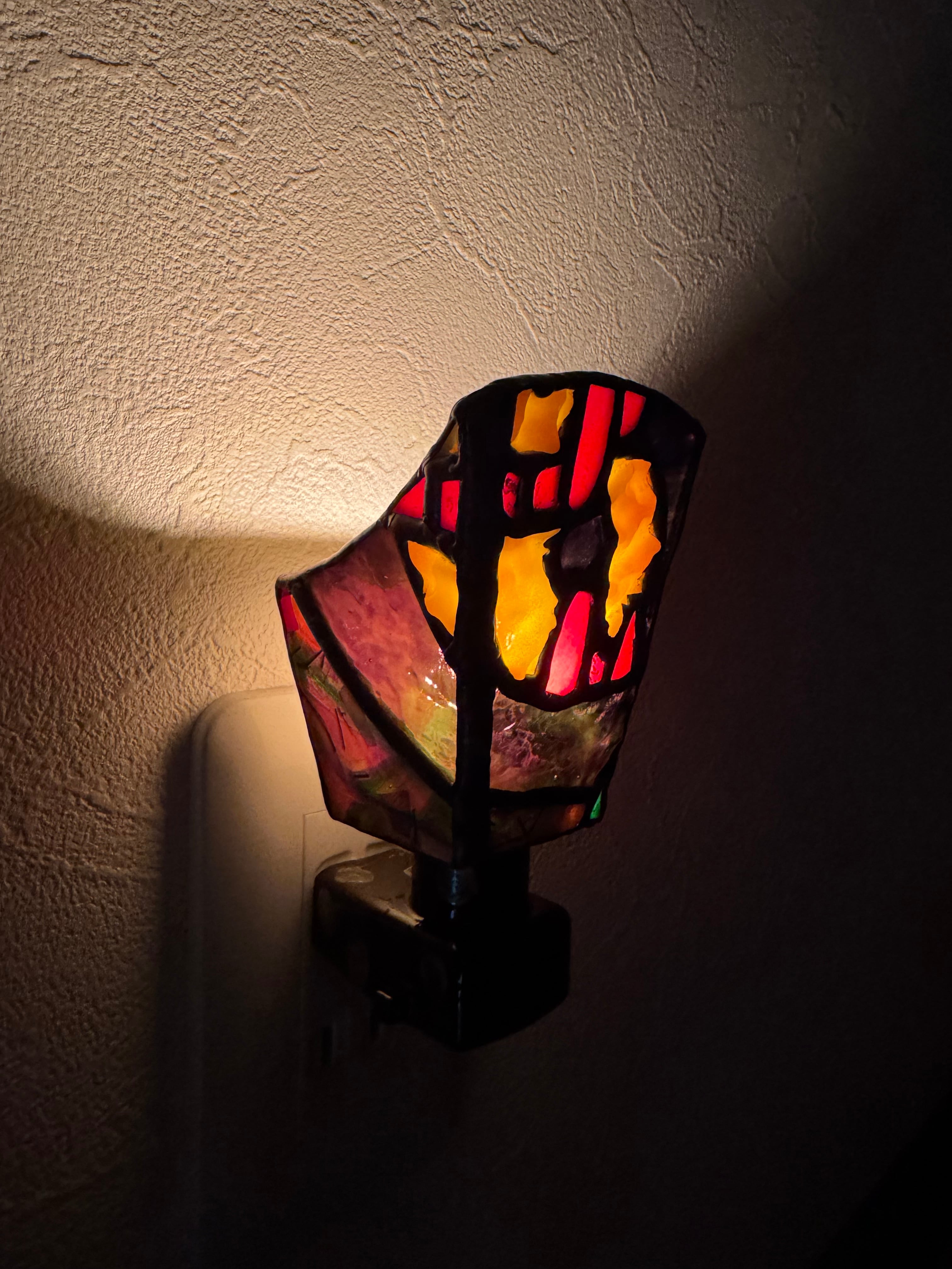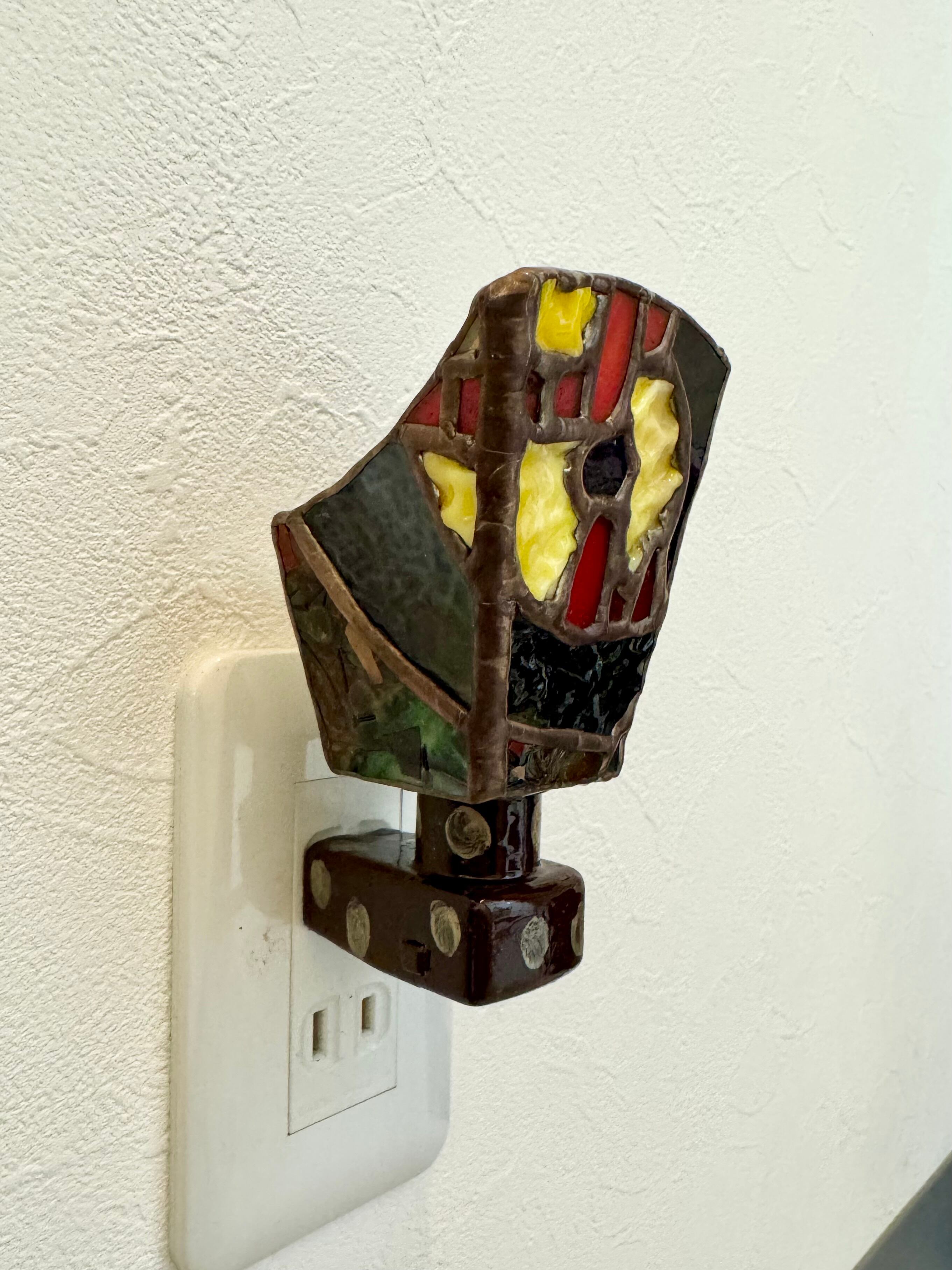 色とりどりの光を楽しめるフットライトです。 古典的なステンドグラスの技法と現代のデザインで表現しています。どんな空間にもマッチし、夜の廊下や階段を照らす小さな灯りです。