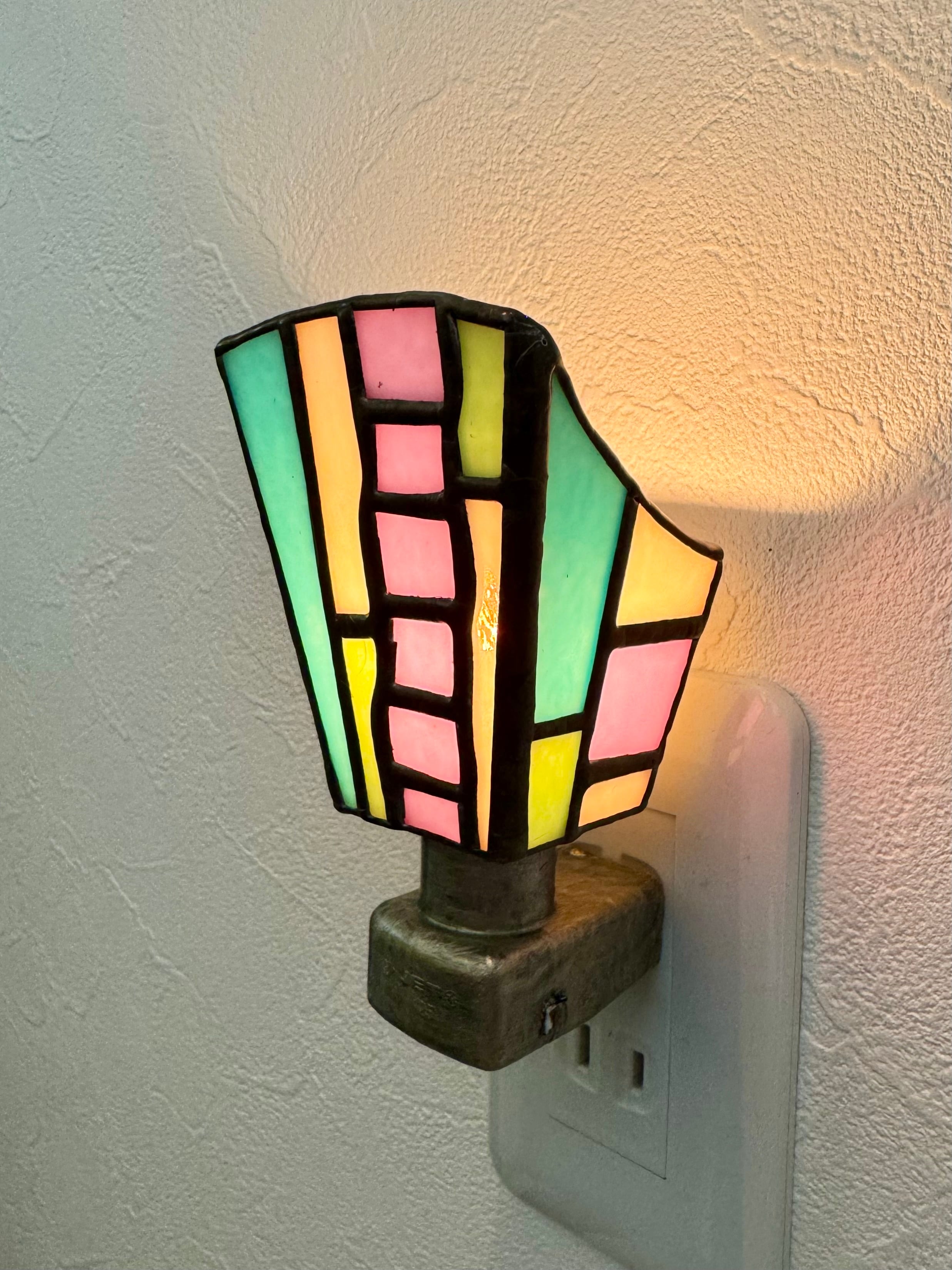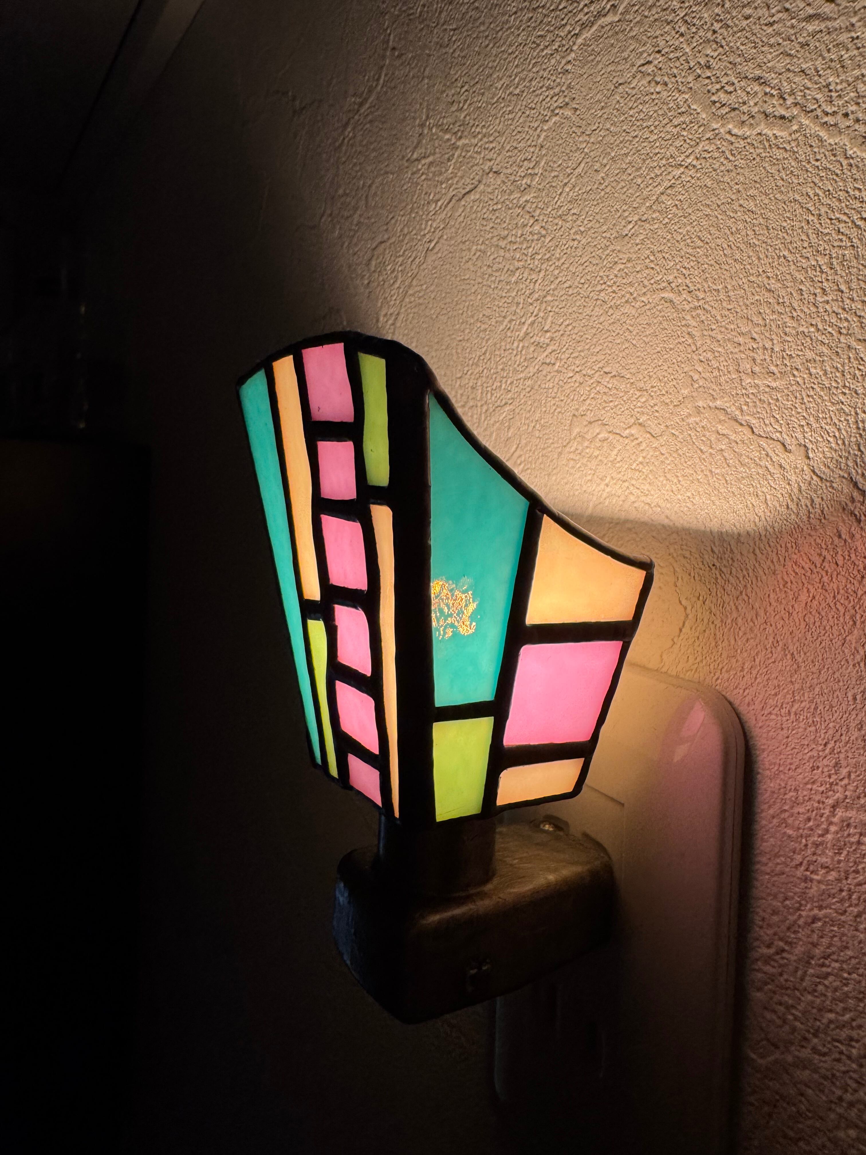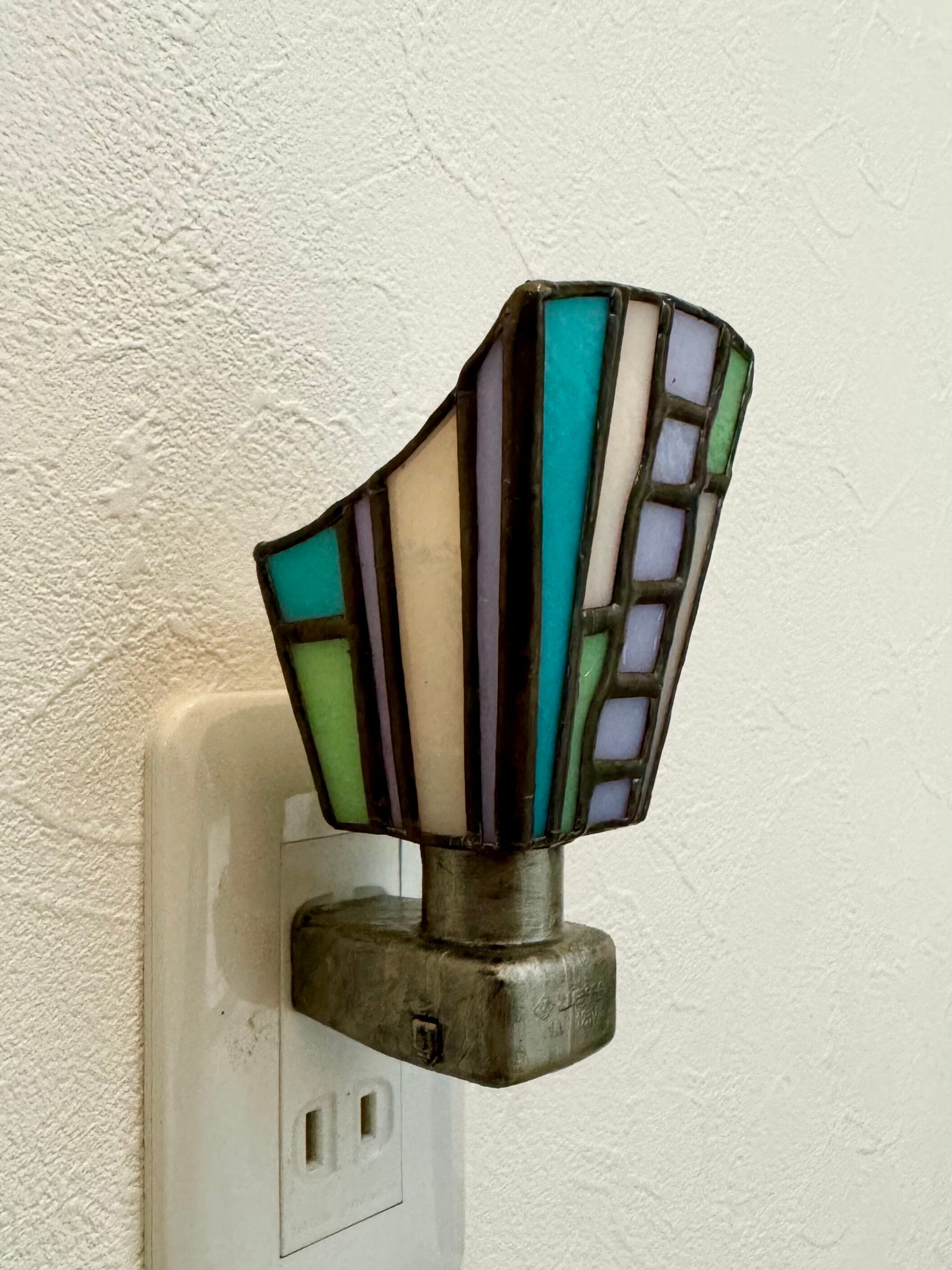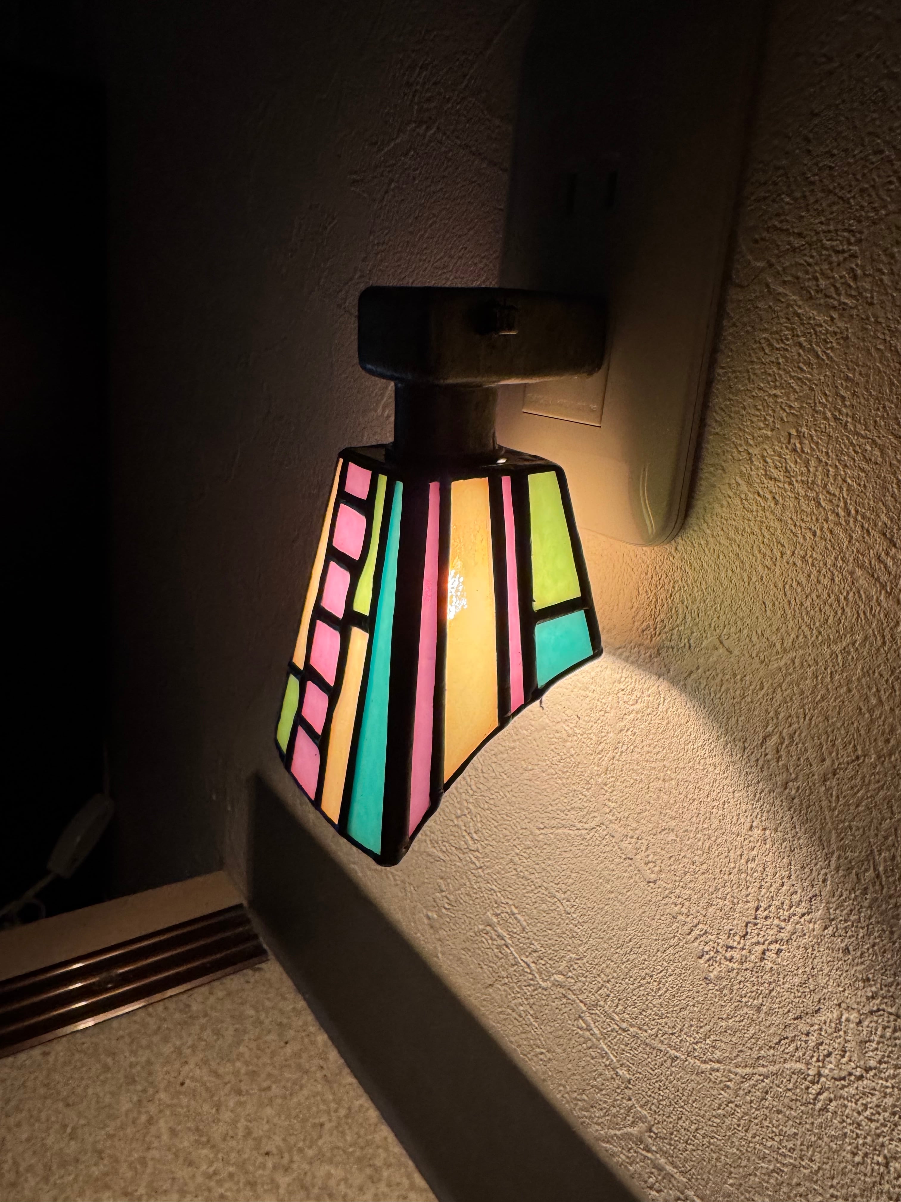 色とりどりの光を楽しめるフットライトです。 古典的なステンドグラスの技法と現代のデザインで表現しています。どんな空間にもマッチし、夜の廊下や階段を照らす小さな灯りです。
